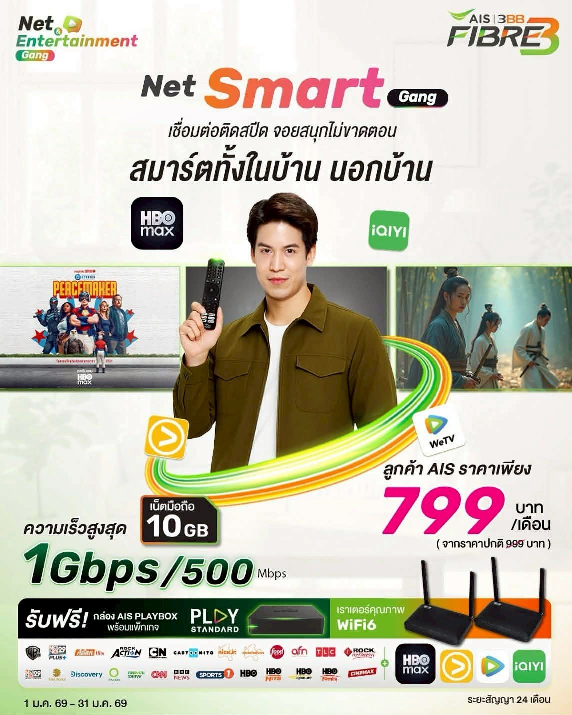 • สำหรับลูกค้า AIS 3BB Fibre3 ที่จดทะเบียนหรือแสดงตนในนามบุคคลธรรมดาเท่านั้น